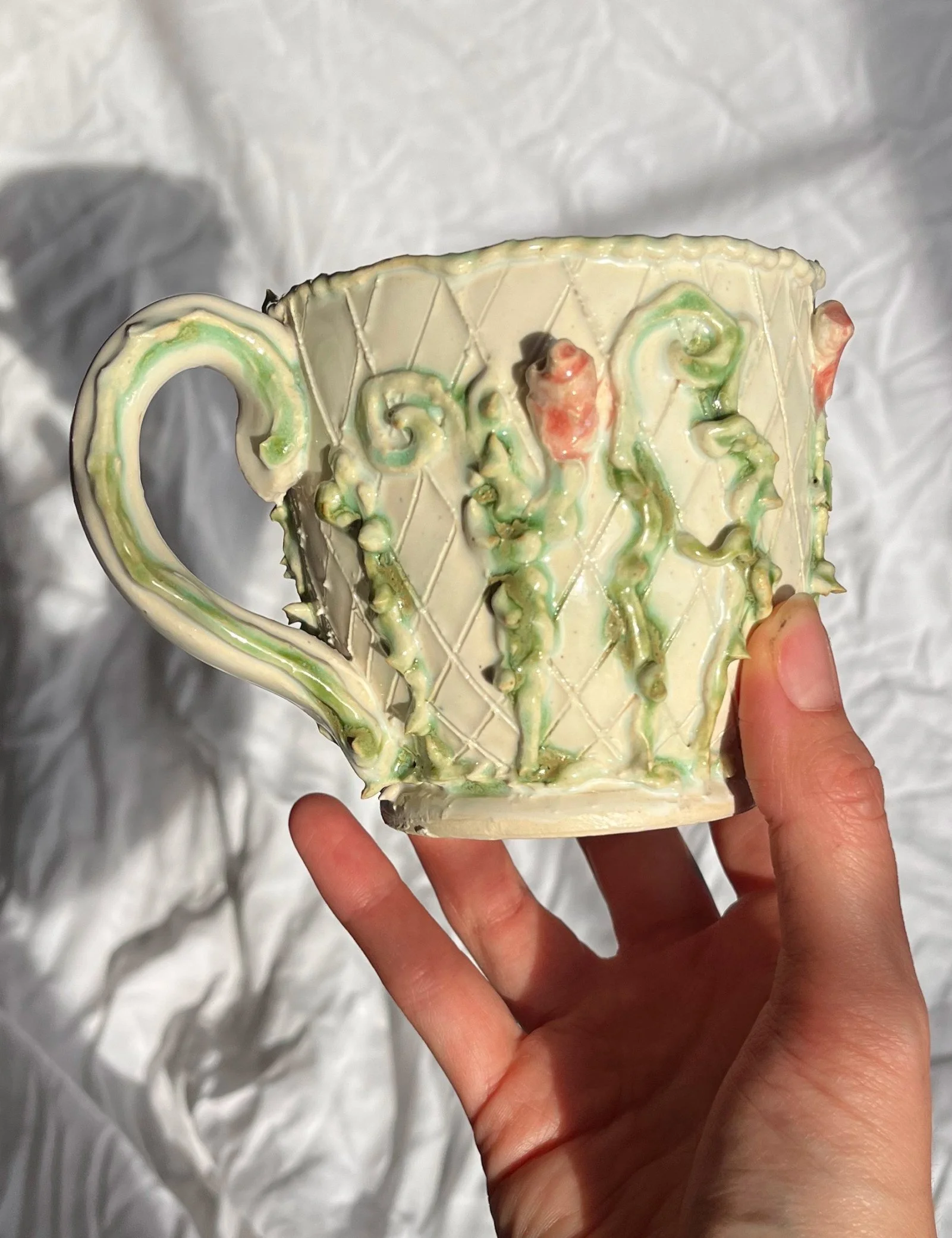 Sarina Swalm, she/they, is an interdisciplinary artist and teacher whose wheel-thrown objects focus on pushing line and texture. Sarina is currently exploring deeper into the wide world of glaze.